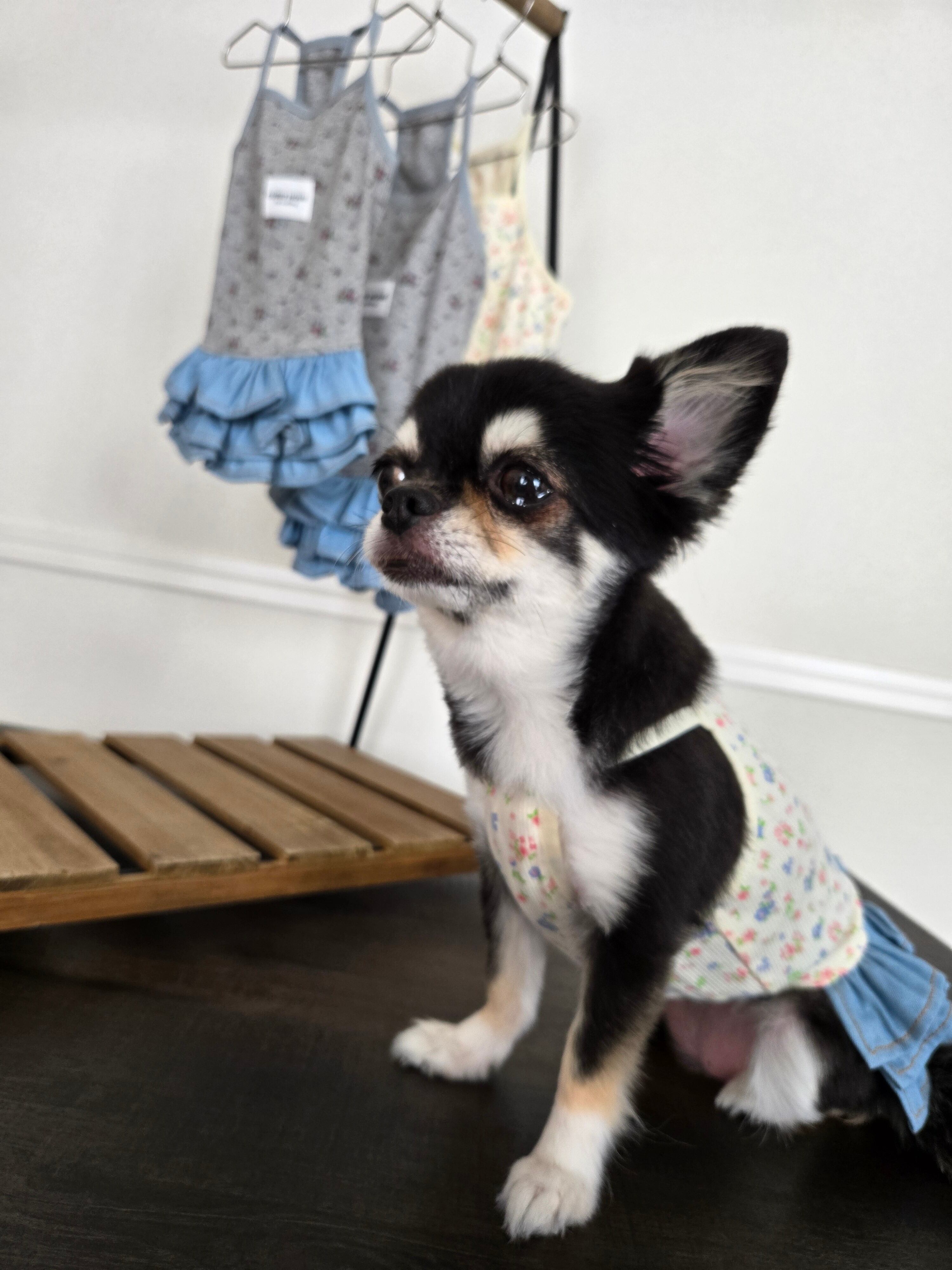 小花のお花が可愛くスカートのデニムカラーと