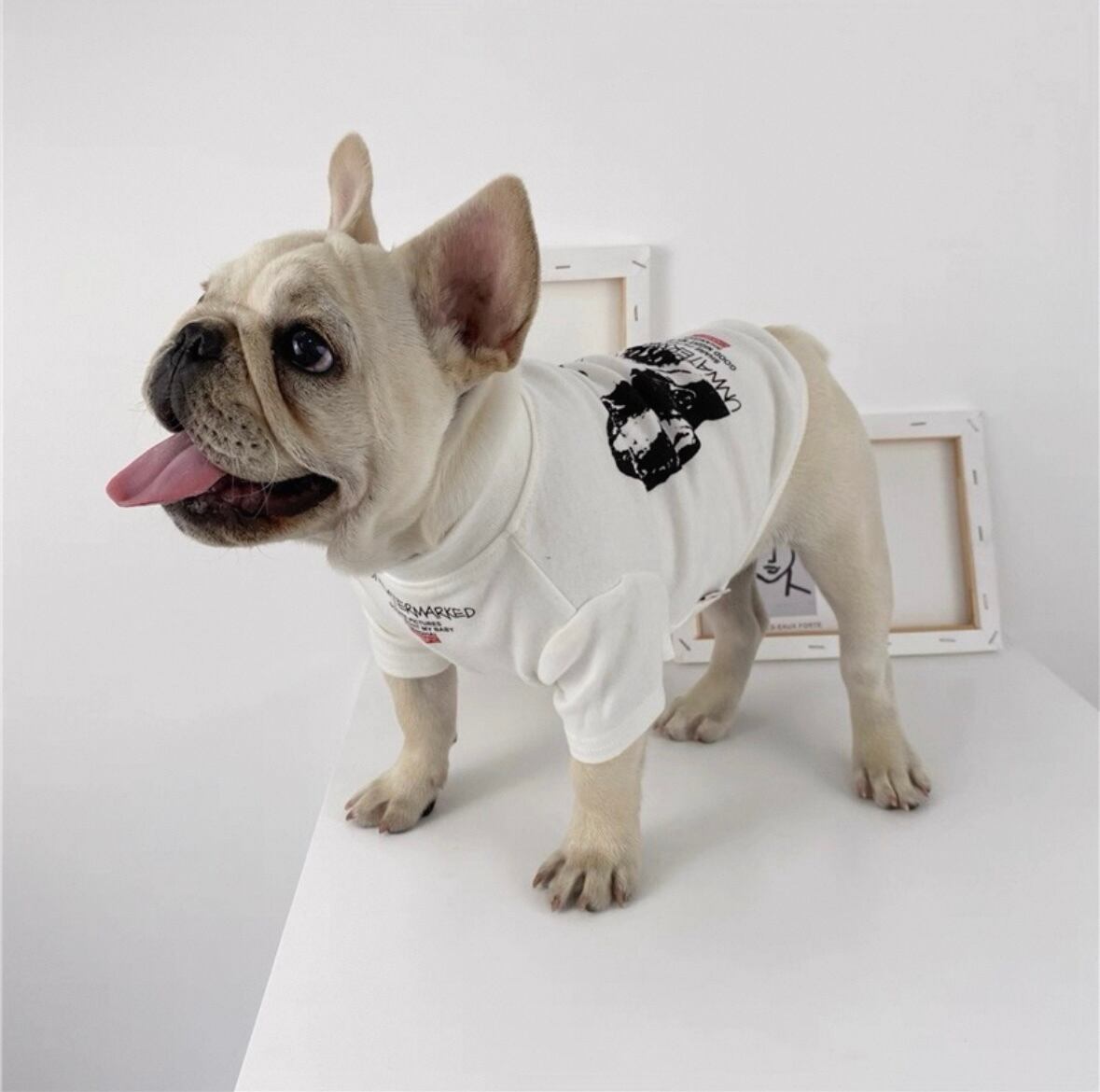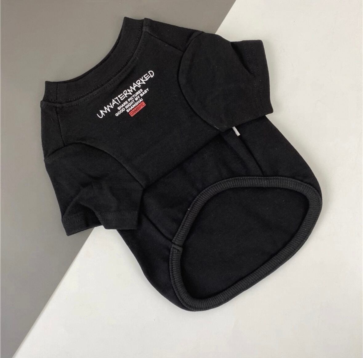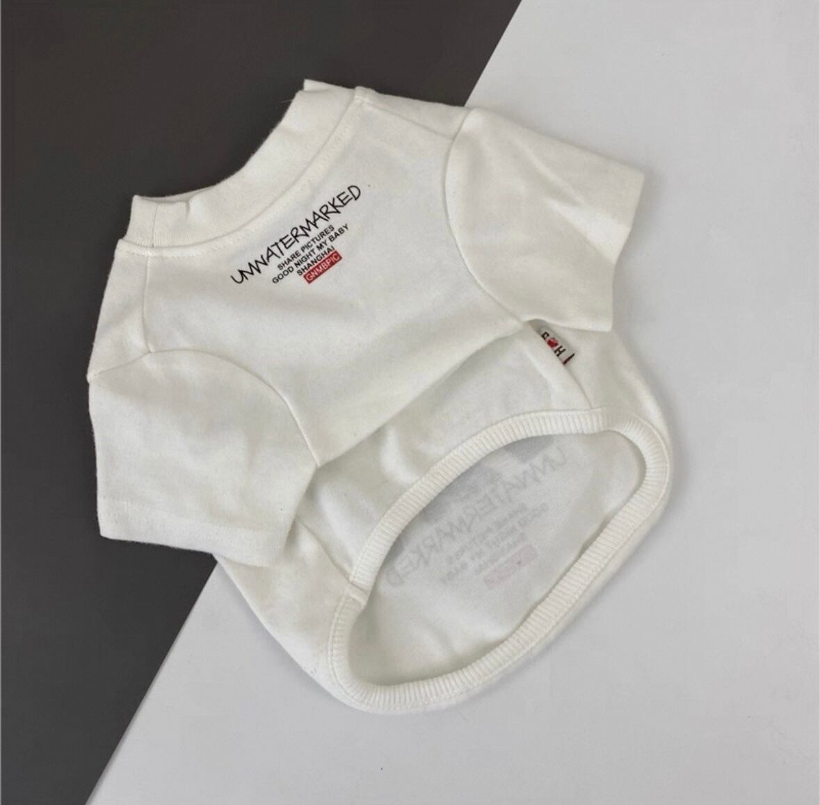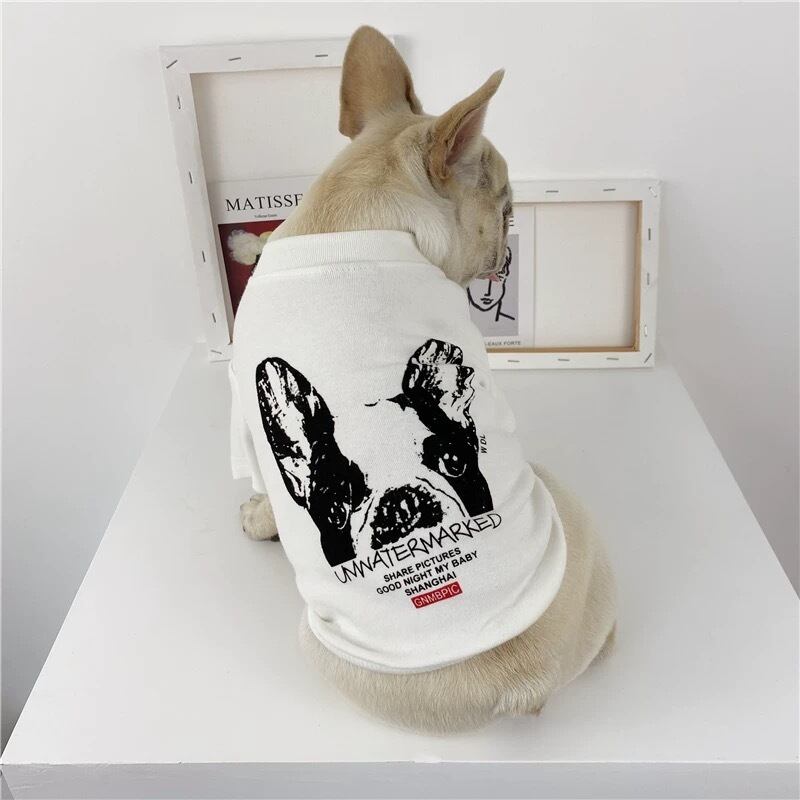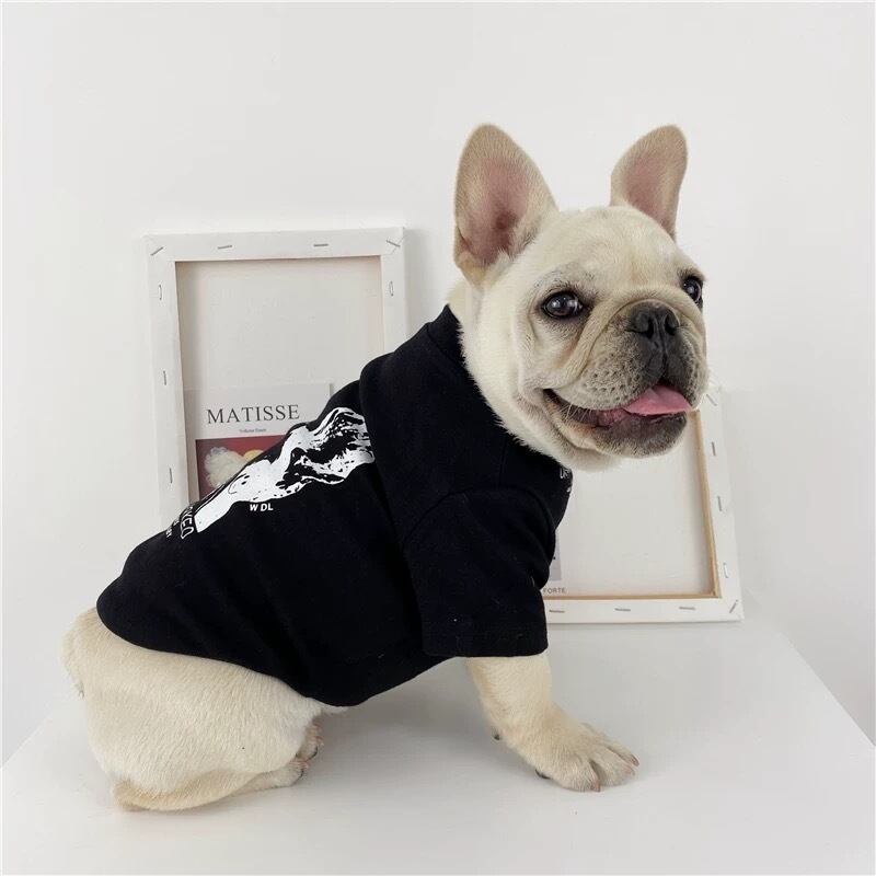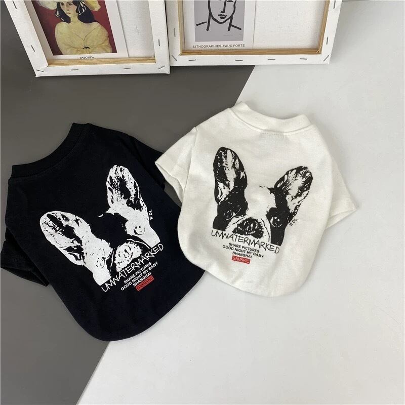 遊び心あるワンボイントで愛犬のお洒落を格上げするブリントTシャッ。