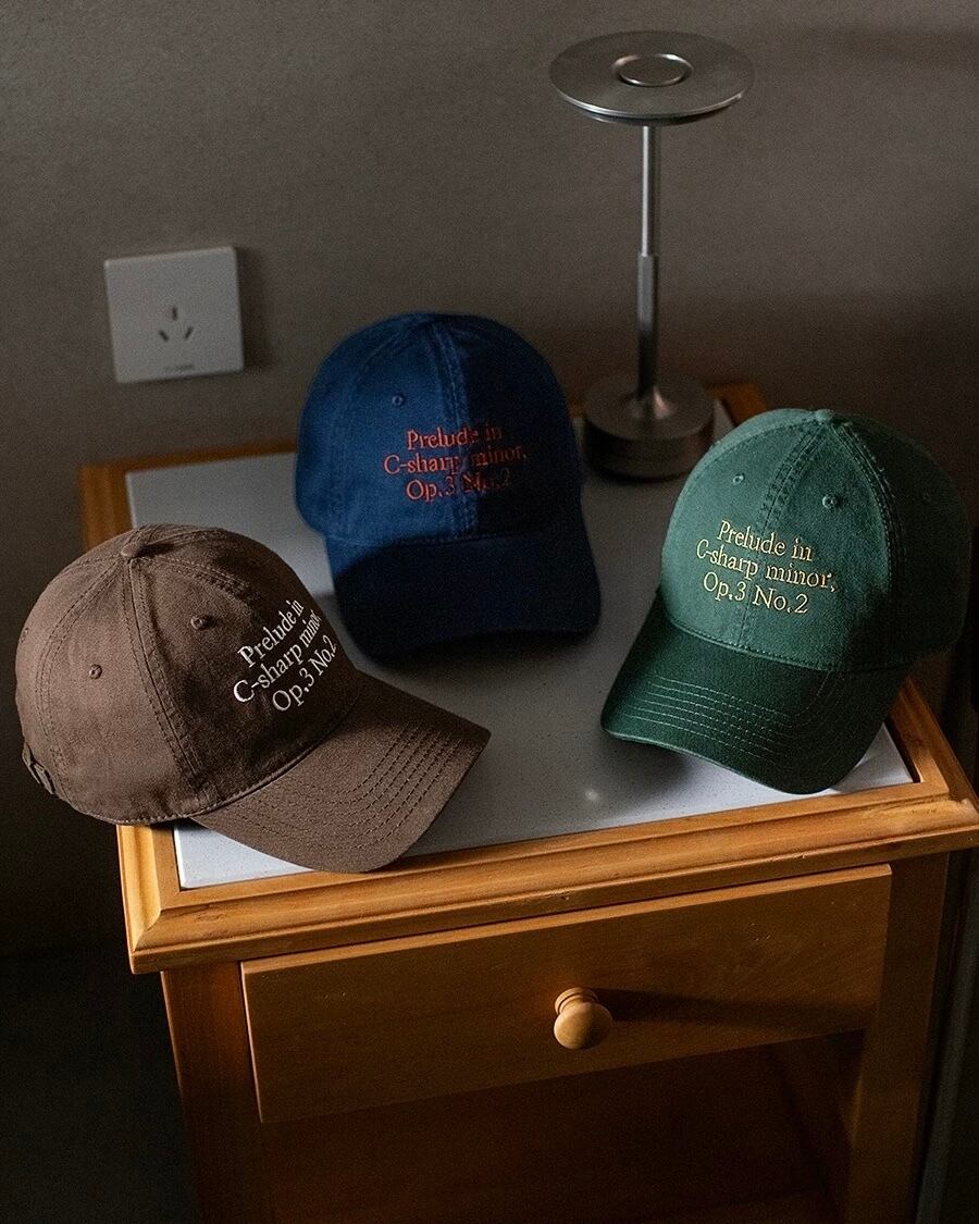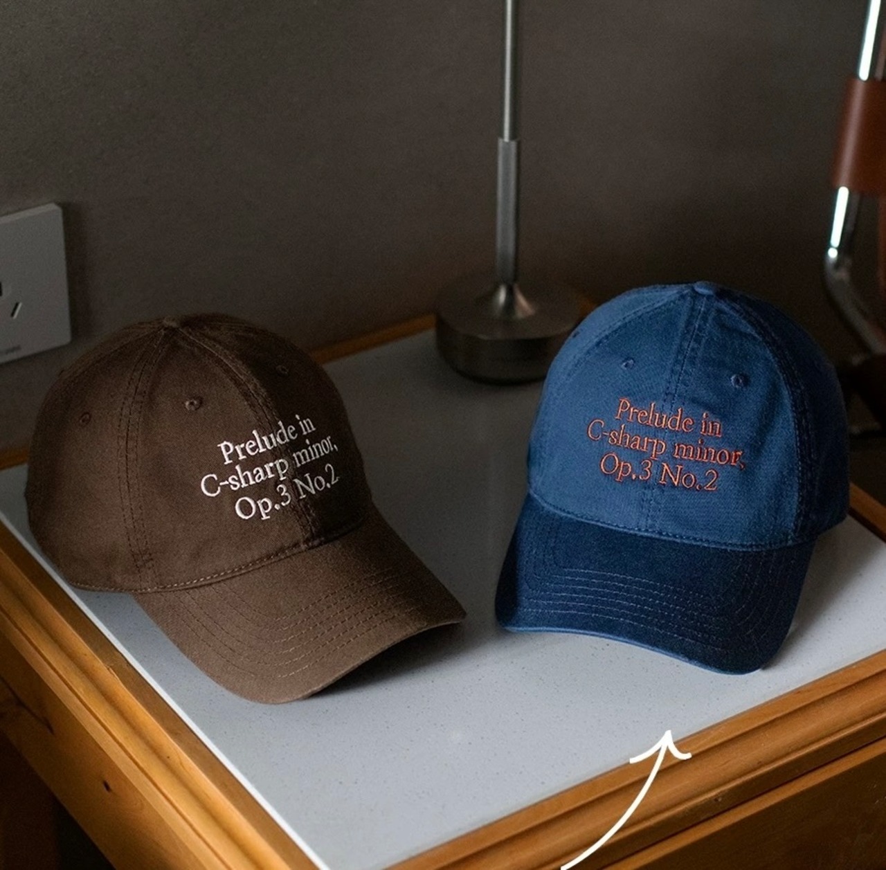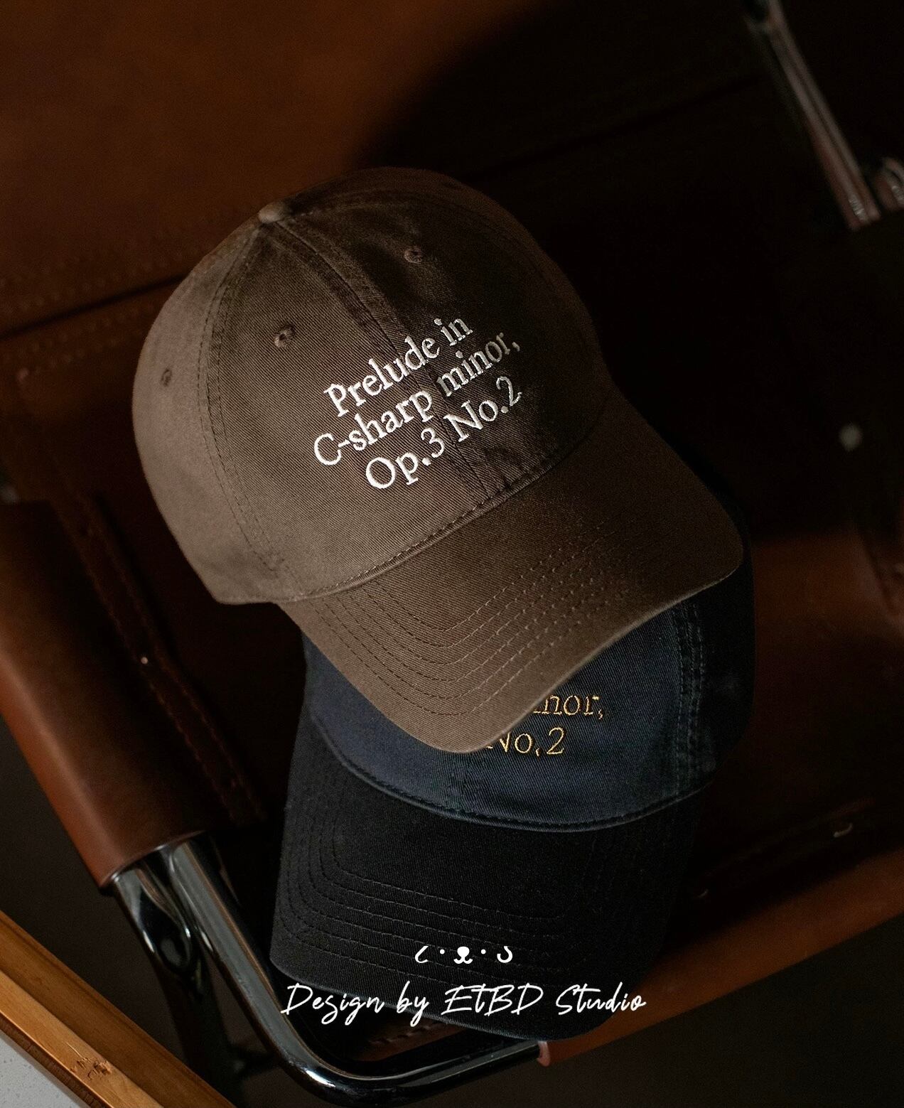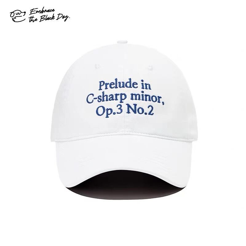 ラフマニノフ《嬰ハ短調の前奏曲 作品3の2》の一 節を刺繍したデザインキャップ。静かな存在感を放つこのフレーズがノンプルなフォルムに知的でアートな印象を添え ます。