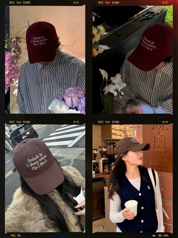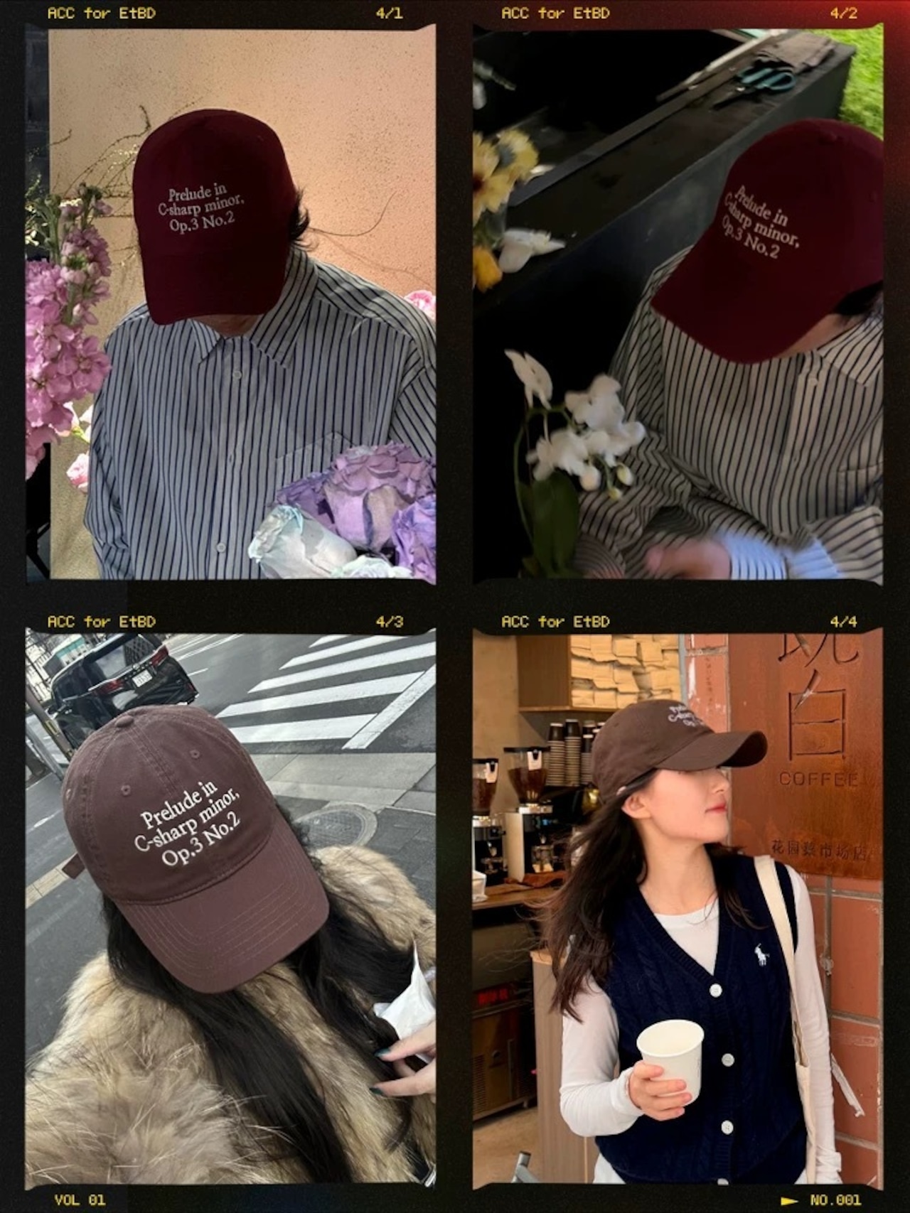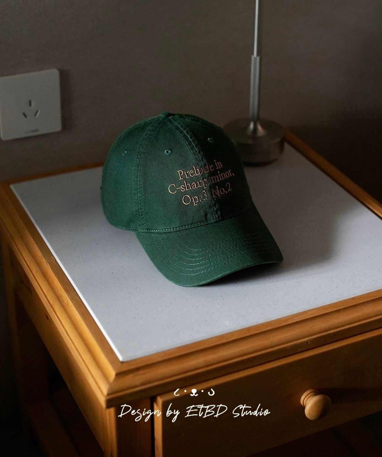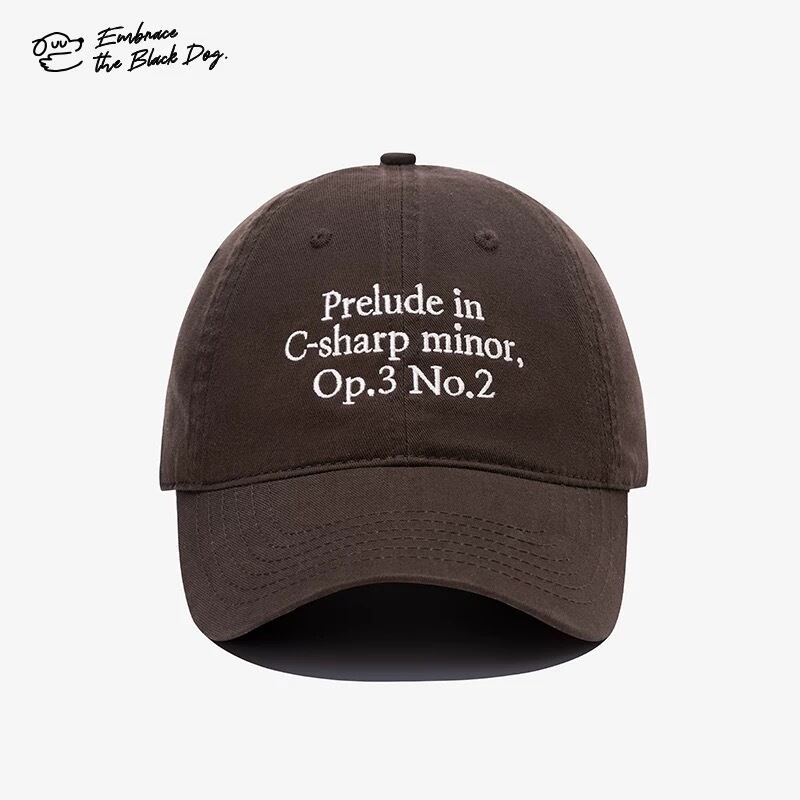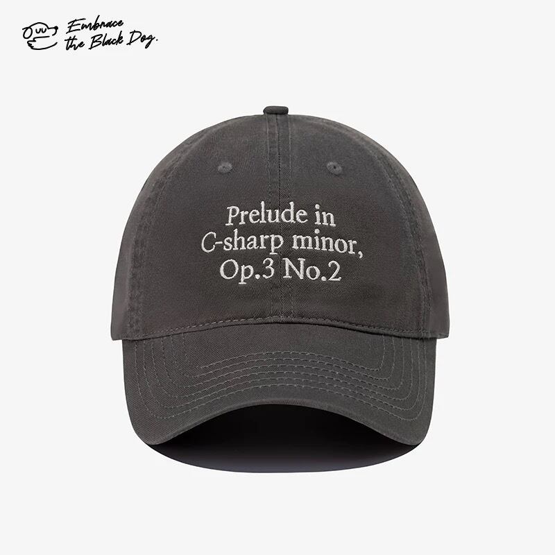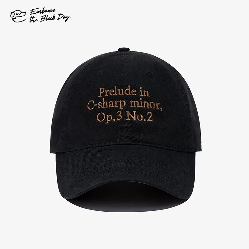 ラフマニノフ《嬰ハ短調の前奏曲 作品3の2》の一 節を刺繍したデザインキャップ。静かな存在感を放つこのフレーズがノンプルなフォルムに知的でアートな印象を添え ます。