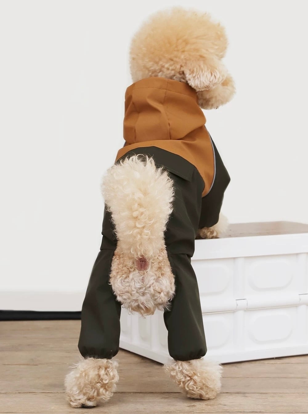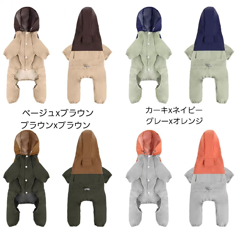 フード付きの全身カバータイプで、 泥はねや濡れを防止。お手入れがしやすくアウトドアや普段のお散歩に大活躍。