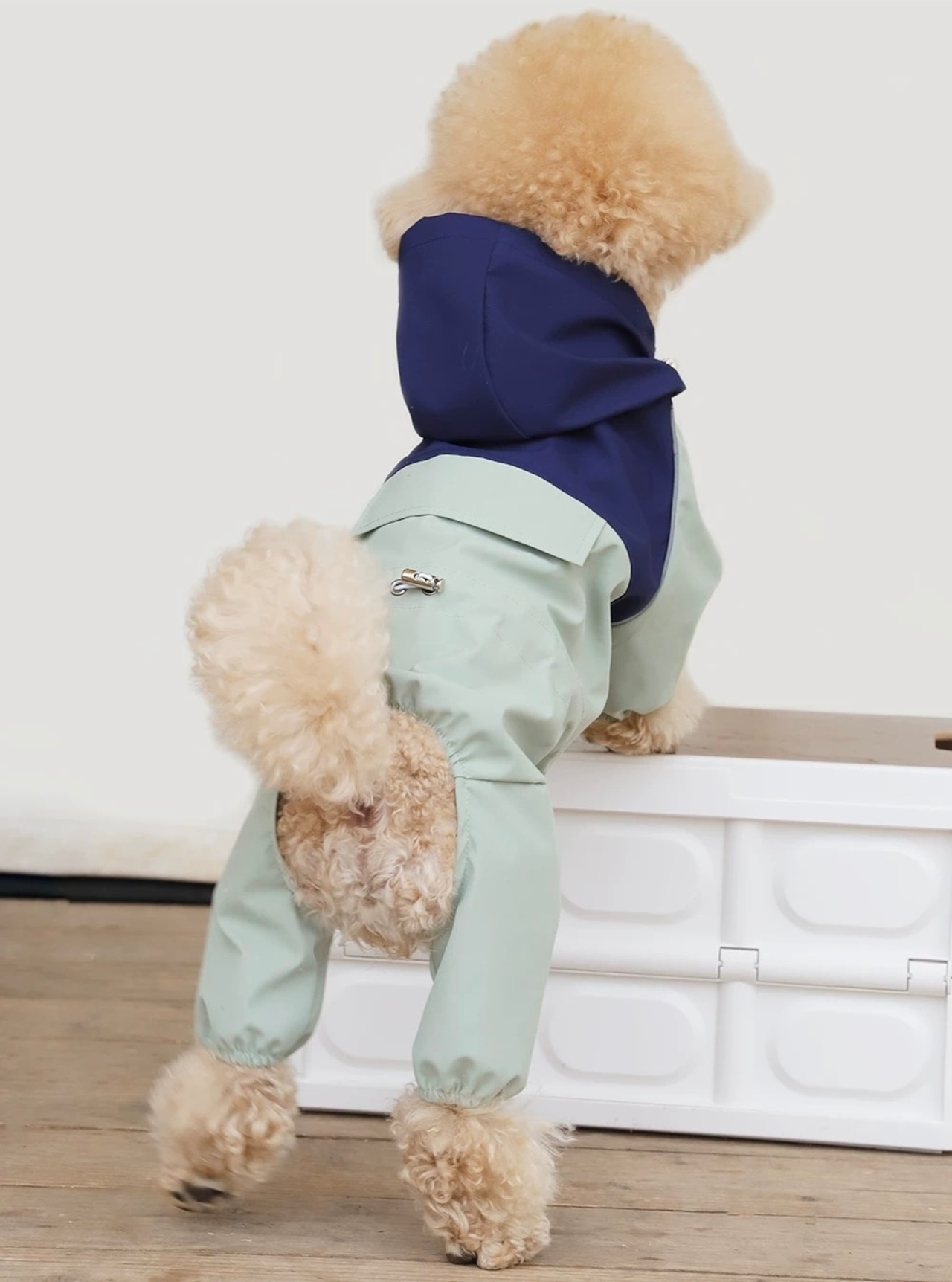 フード付きの全身カバータイプで、 泥はねや濡れを防止。お手入れがしやすくアウトドアや普段のお散歩に大活躍。
