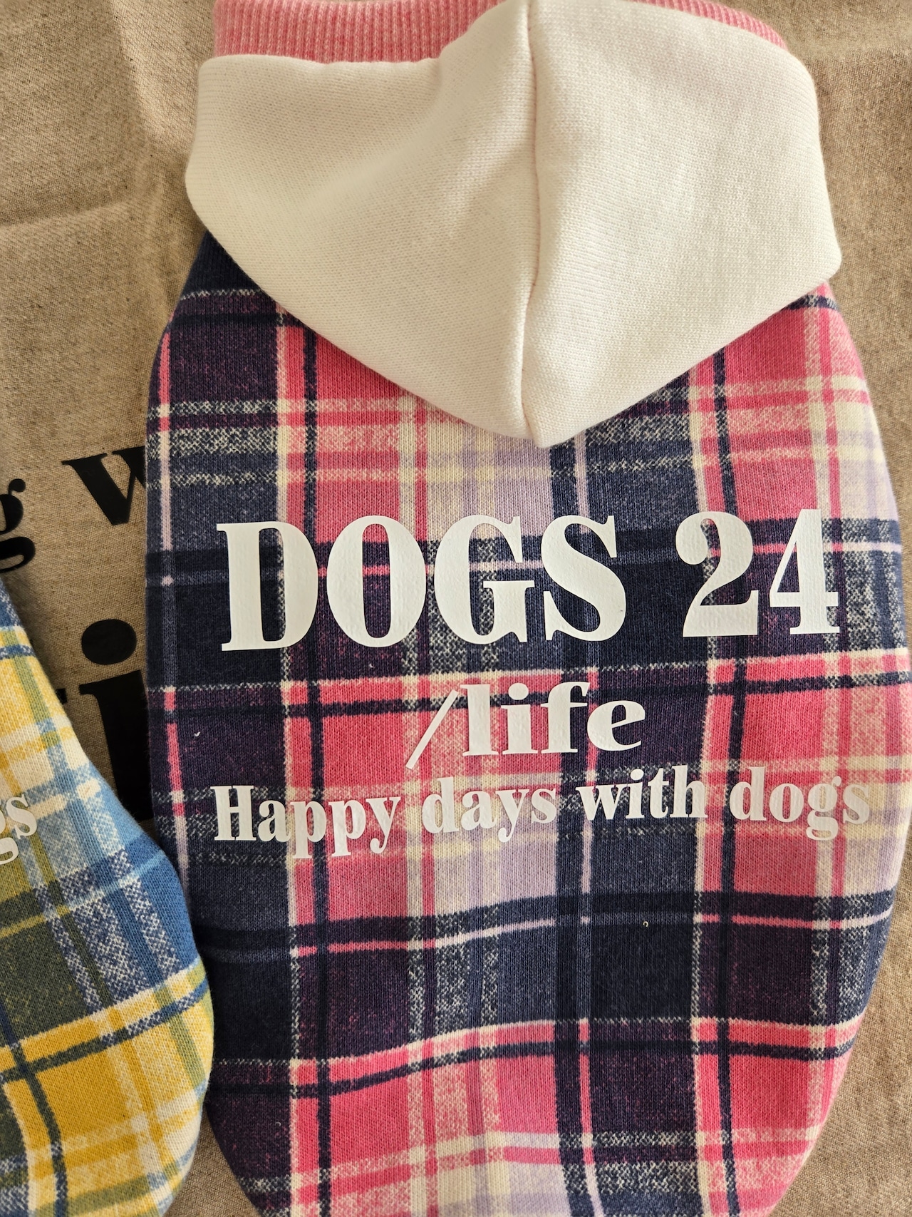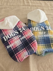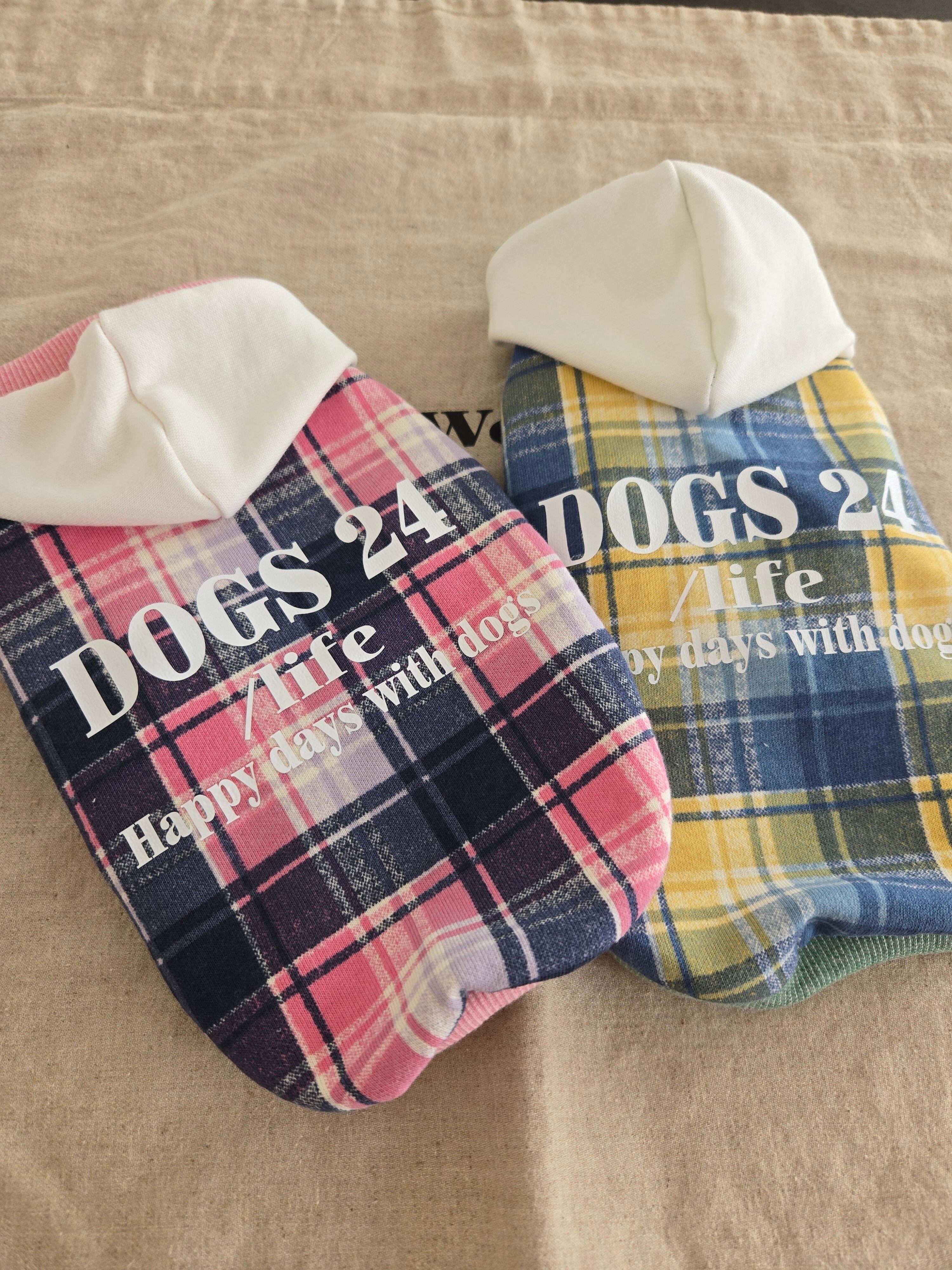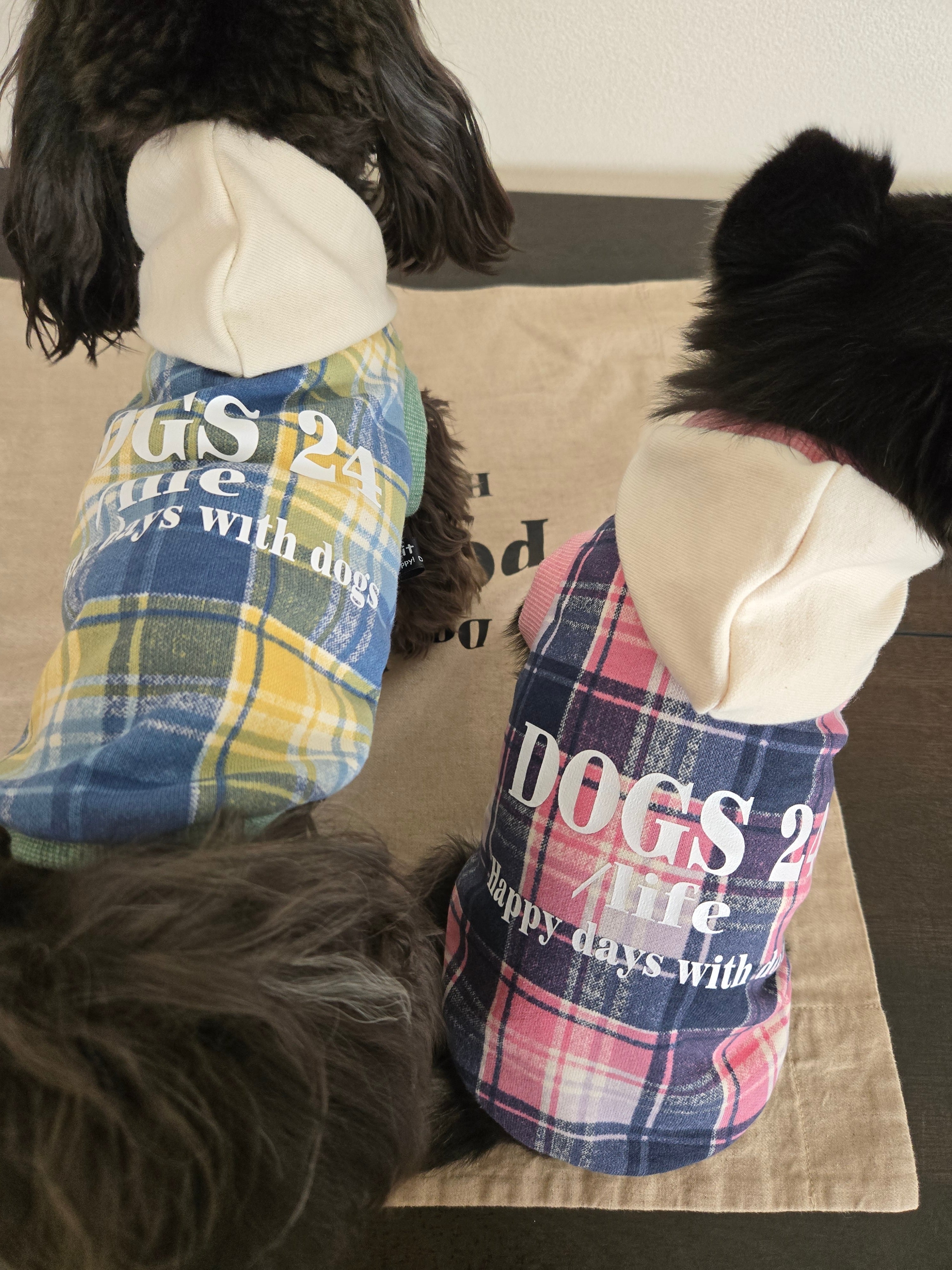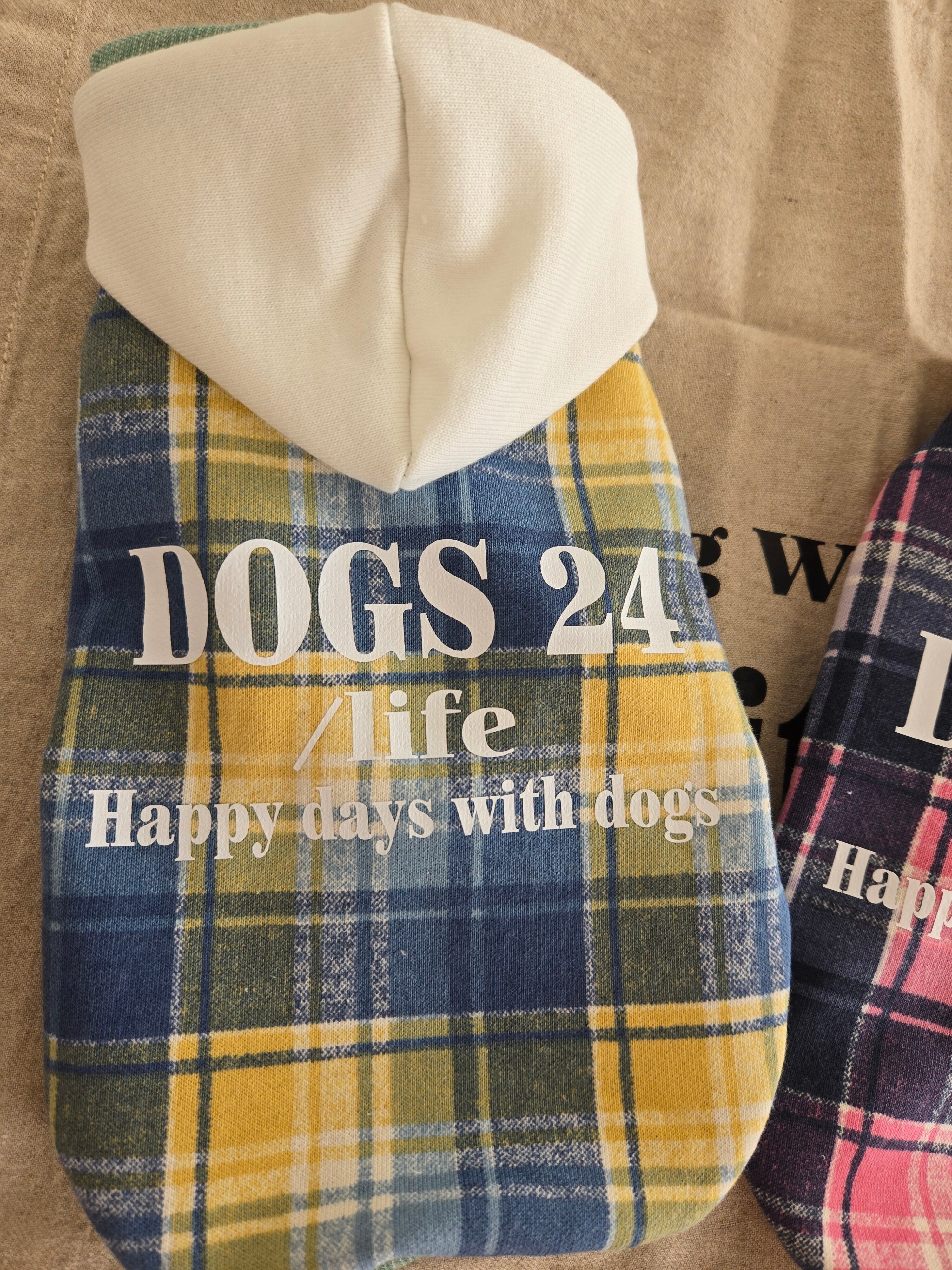 「幸せをまとう "DOGS 24 /ife' シリーズ 犬との毎日を、 お洒落に。心地よく。 24という数字に"幸せ"の願いを込めて仕立てた特別なチェックパーカーです。
