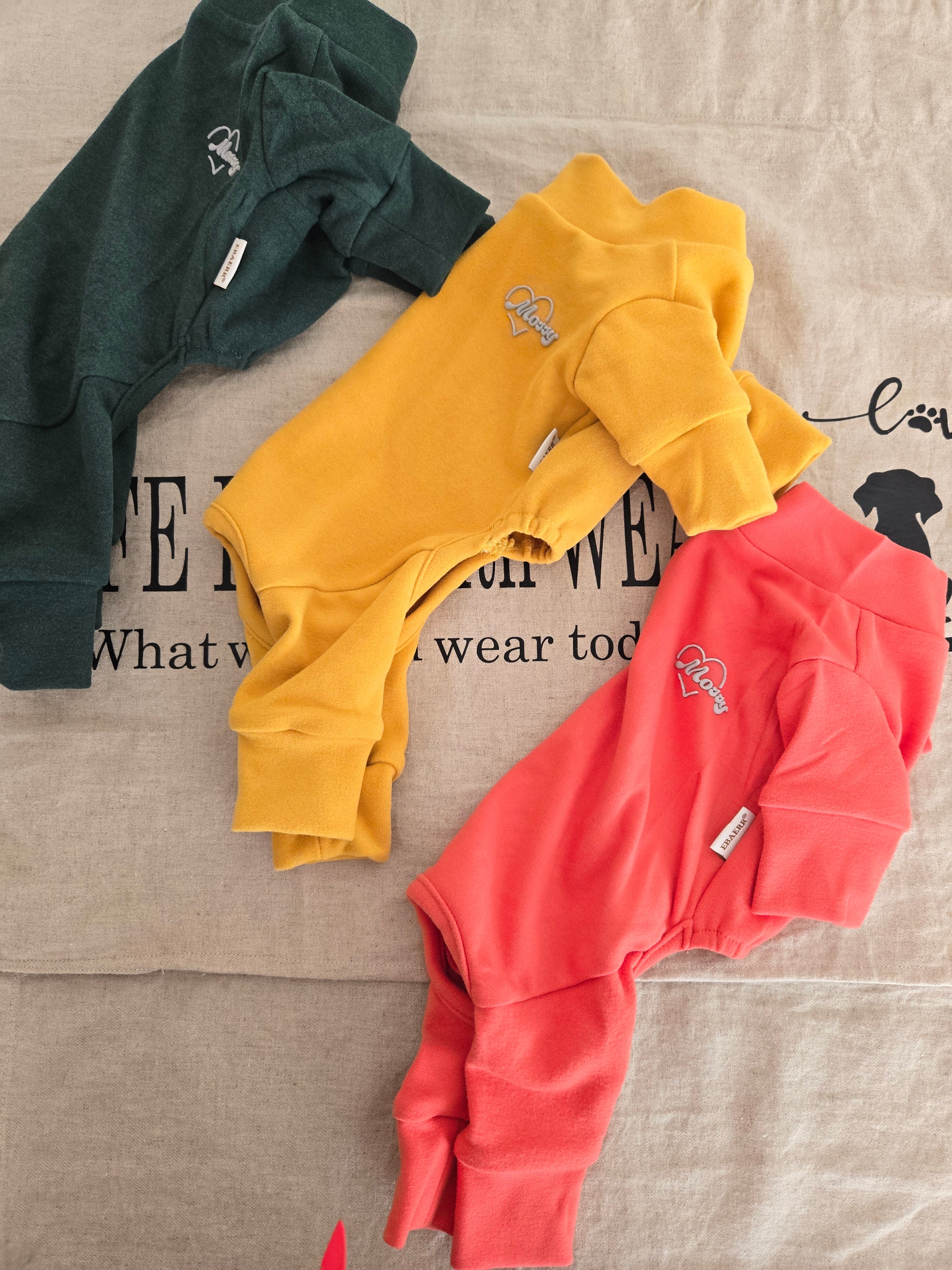 やわらかなコットン素材を使用した、着心地の良い四脚タイプのドッグウェアです。
